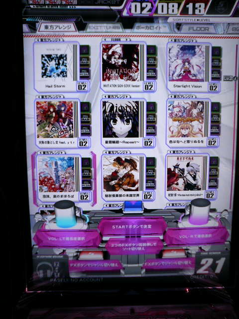 (他のコナミの音楽ゲーム同様、曲ジャンルごとにタブが分かれていて「東方」の他に「ボカロ」タブ等もあり)